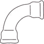 Bløtstøpt fitting av støpejern. Har innvendig gjenge i begge ender samt en vinkel på 90°. Bøyningen har stor radius.