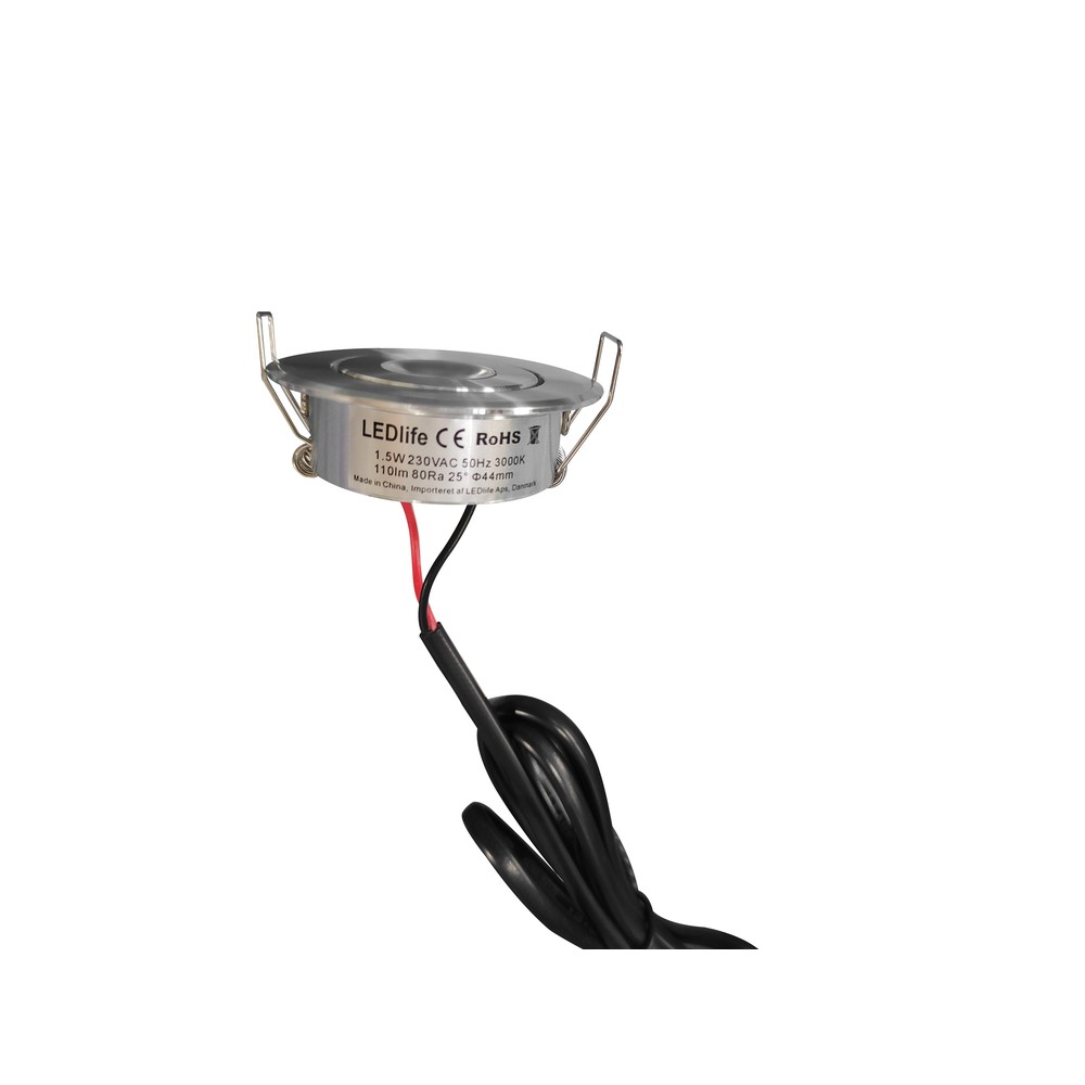 Denne LED innfelte spotten er en effektiv erstatning for en tradisjonell 15W pære. Den leverer en lysstyrke på 110 lumen og er designet for 230V tilkobling. Med en spredningsvinkel på 25° gir den et fokusert og presist lys.