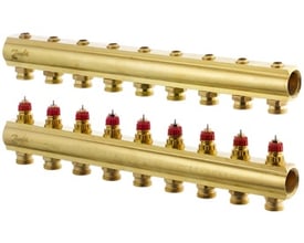 1 sett med fordelerrør/avgreininger: De selges i sett med to rør, hvor den ene brukes til fremløpet og den andre til returløpet. Finnes med ulike antall avgreininger, og er utstyrt med komplette eurokonuskoblinger i forskjellige størrelser. Disse kan byttes ut til andre størrelser hvis det er et behov.