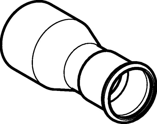 Reduksjon med nippelende og presskobling. Brukes til varme-, kjøl- og industrianlegg. Med presseindikator og garantert utett før pressing. Ikke egnet for drikkevann.