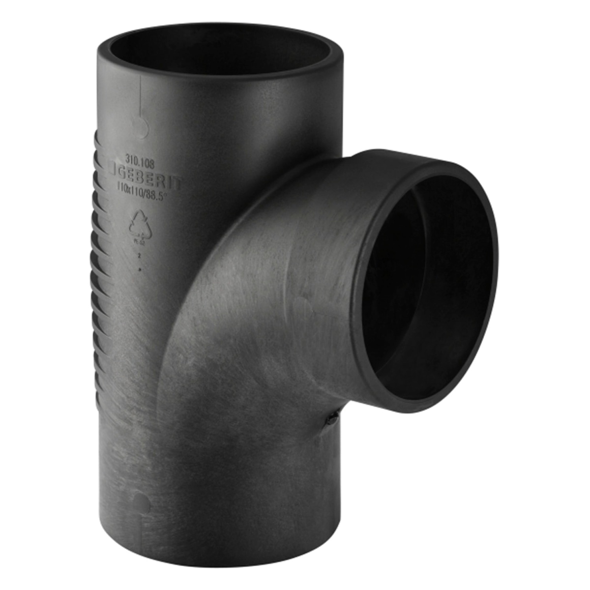 Geberit Silent grenrør, 110 mm, med en vinkel på 88,5°. Lyddempende, UV-bestandig og slitesterk. For avløpsinstallasjoner med TPE-lyddemping.