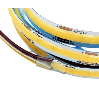 Denne 5 meter lange CCT COB-LED stripen leverer en effektiv belysning på 10W per meter og er ideell for et bredt spekter av bruksområder. Med en spenning på 24V DC sikres en stabil og pålitelig drift.