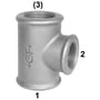 Bløtstøpt fitting av støpejern. Har innvendig gjenge i begge ender, samt forgreningen.