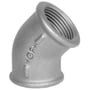 Adusert fitting av støpejern. Har innvendig gjenge i begge ender og en vinkel på 45°.