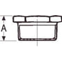 Georg Fischer galvaniseret nippelmuffe i støbejern med dimensionerne ¾" x ⅜" og synligt GF+ logo.Georg Fischer galvaniseret nippelmuffe mærket med 1 og 2 for at vise gevindstørrelserne ¾" og ⅜" på siden.Skematisk tegning af en galvaniseret nippelmuffe fra Georg Fischer, der viser dimensionen 'A' og gevind.