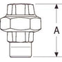 Georg Fischer galvaniseret union i støbejern, ⅜" x ⅜", vist med en tværsnit der viser konisk tætning og gevinddetaljer.Diagram af Georg Fischer galvaniseret union med angivet dimension 'A', viser unionens ydre form.