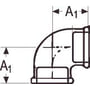 73. Georg Fischer 90° galvaniseret vinkel lavet af blødstøbt støbejern med indvendigt gevind i begge ender, 1" x 1".Galvanisert albue 90° m. mf/mf - 1" x 1"
