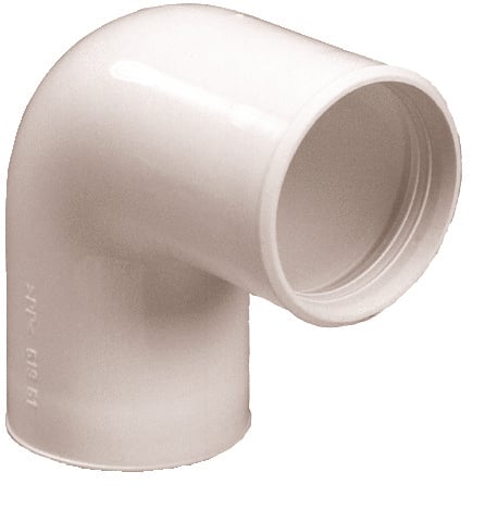 90° vinkel i hvit plast med muffe/spiss og gummitetting for enkel innstikking. Ideell for avløp.