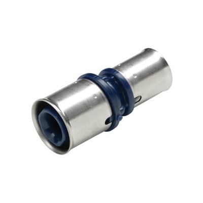 Presskobling som brukes til Tigris Alupex-rør fra Wavin. Har en forhåndskobling i begge ender og en av dem er redusert i forhold til den andre.