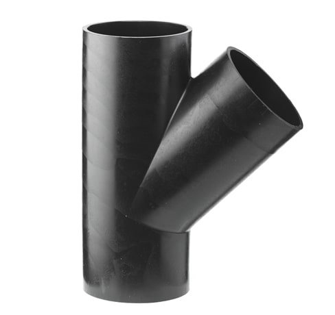 Produktet har en diameter på 56 x 50 mm og en vinkel på 45°, noe som gjør det ideelt for å skape forgreninger i rørsystemer. Den svarte fargen og det holdbare PEH-materialet sikrer en pålitelig og diskret integrasjon i ditt avløpssystem.