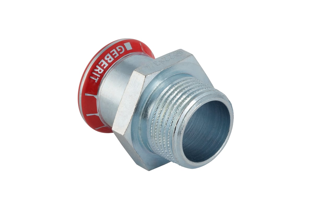 Geberit Mapress FZ overgang, el-galvanisert. Ideell for varme- og kjøleanlegg. Med presseindikator, utett ved manglende pressing, og ombyttbart frem- og tilbakeløp.