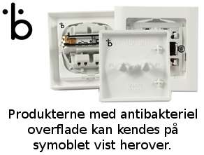 Brukes på Baseline underlag og panelunderlag samt på innmuringsbokser (hvis de er nøye innmurt) men ikke på forfradåser. Rammen er 1 modul i høyden og bredden og har en spesiell bakteriedrepende overflatebehandling. Må brukes sammen med tilsvarende antibakterielle deksler og tangenter.