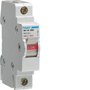 Hager 1P bryter for sikker utkobling av strømkretser. Med grønn/rød markering for tydelig posisjonsindikering. 25A, 230V/400V.