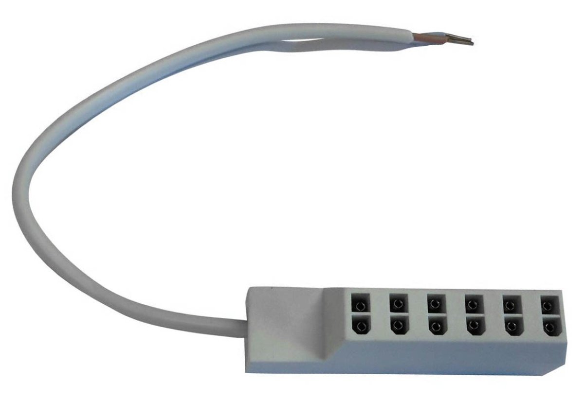 Denne 6-veis fordelerboksen fra AMP leveres med en 20 cm ledning, noe som gjør installasjonen enklere og mer fleksibel.