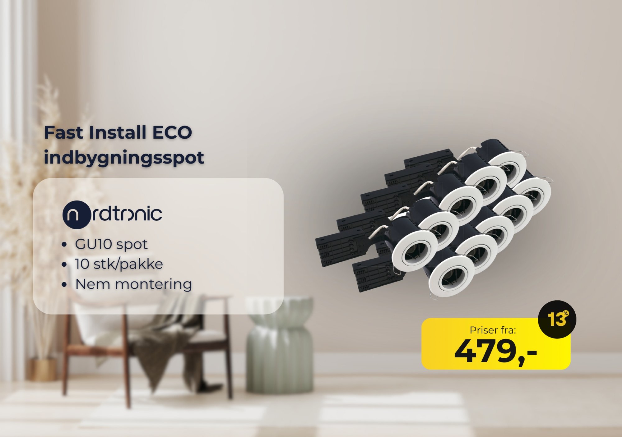 Nordtronic er et dansk merke som er kjent for innovasjon, kvalitet og eksklusive produkter. De populære Nordtronic serier Quick Spot, Uni Install og Low Profile serier er alle banebrytende både i forhold til utseende, finish, lave innbygningshøyder og en rask installasjon. Nordtronic tilbyr også LED-spot til kjøkkenskap, som du kan innbygge. Her kan du med fordel se på seriene Linea og Gabriella seriene.