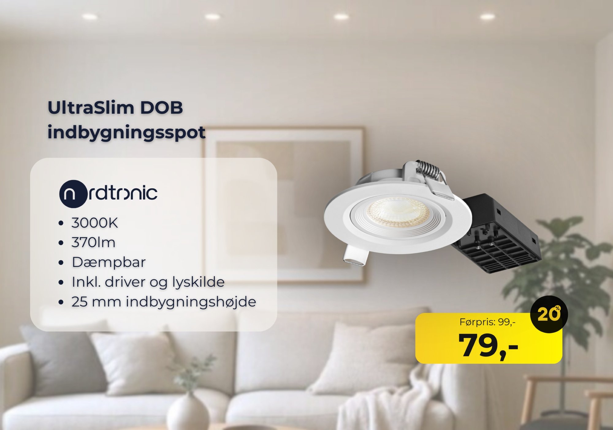 Hvis du setter 1-2 spot opp pr. m2, går du heller ikke helt galt i byen.