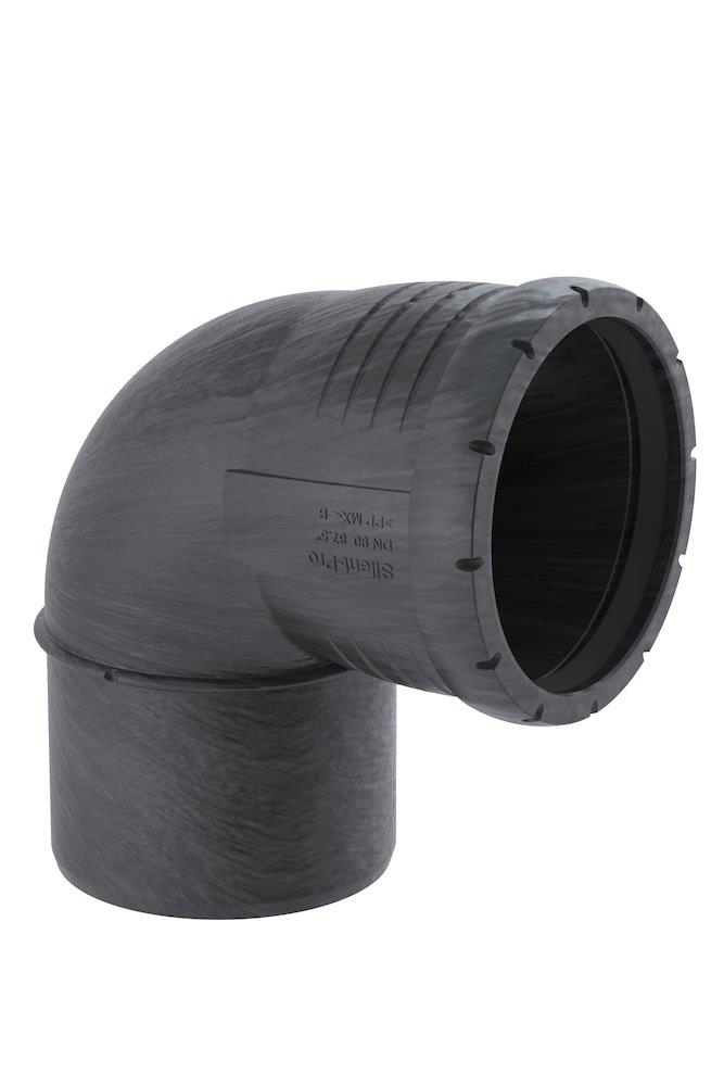 Silent-Pro bøy 30° 160mm i svart PP MX for avløp i bygninger.