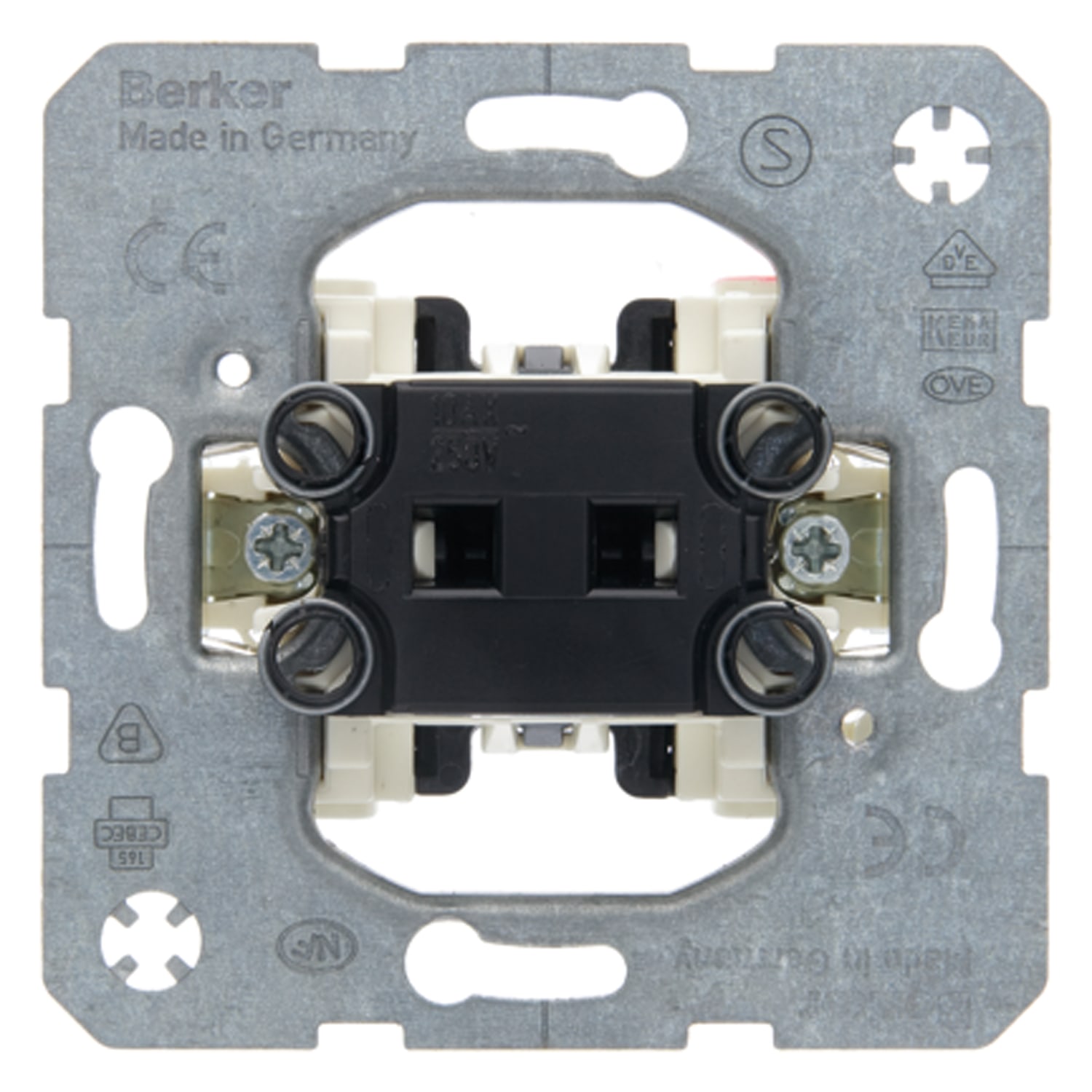 Berker bryterinnsats 1-polet/korrespondanse, 10 AX, 250 V~ med plug-in terminaler.