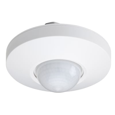 Automatisk lysstyring for innendørs bruk. Denne 230V bevegelsessensoren med 9m rekkevidde og 360° dekning monteres i standard euroboks.