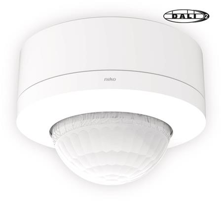 DALI-2 BMS eller sekundær sensor, high ceiling, for påmontert montering. Bevegelsessensor for store rom med høyt under taket. Kan utvide rekkevidden for en DALI-master sensor.
