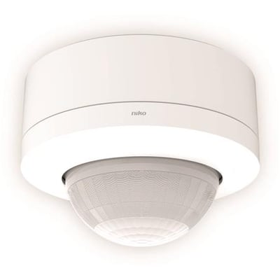 230V bevegelsessensor fra Niko, master, lang rekkevidde, for påbygd montering. Enkel installasjon med skrueløse plug-in terminaler og pålitelig rekkevidde.