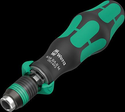 Bruk: Egnet for bits med 1/4"-utvendig sekskanttilkobling i henhold til DIN ISO 1173-C 6,3 og E 6,3 samt Wera tilkoblingsserier 1 og 4 Utførelse: I håndtaket integrert skralde med...