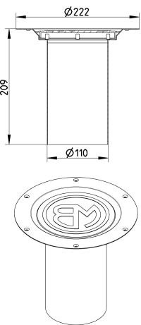 Overdelen har en høyde på 209 mm og en rørdiameter på ø110 mm, og er produsert i rustfritt stål (AISI304/EN1.4301) med en dimensjon på 220 mm.