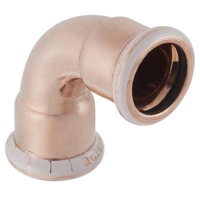 Geberit bøy i cu for 90 graders vinkel, 12mm muffe/muffe. Brukes til sanitæranlegg, varmeanlegg og industri. Med presseindikator.