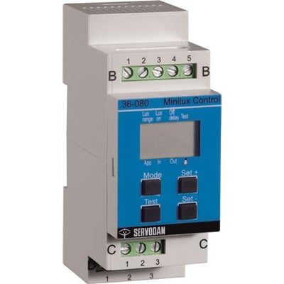 Denne Minilux Control-enheten er designet for intelligent styring av belysning og tilbyr fleksibel anvendelse, både innendørs og utendørs. Den har et innebygd LCD-display, som gir oversikt over innstillinger, og støtter 3 lux-områder for presis lysstyring.
