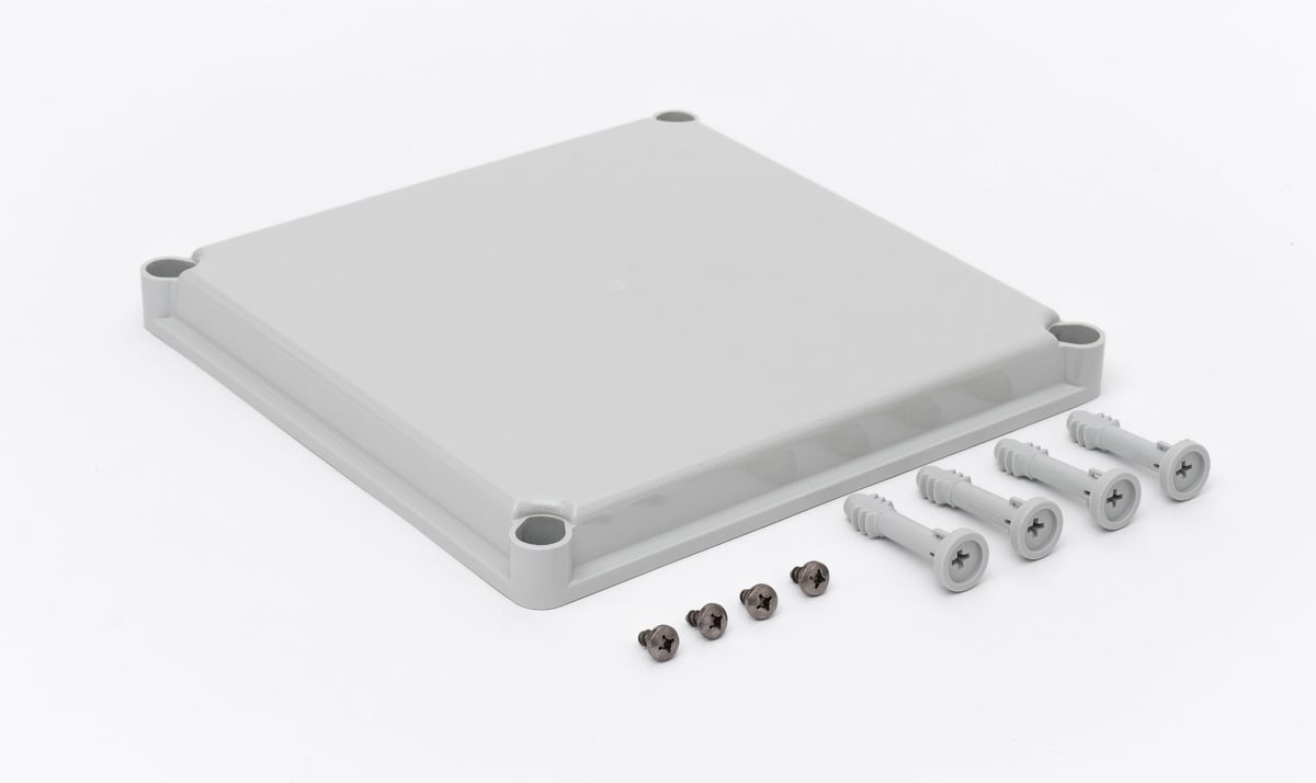 FIBOX EK SOLID deksel i grå polykarbonat, 280 x 280 x 30 mm. Ideell for tavler og modulbaserte løsninger. Finnes også i transparent.