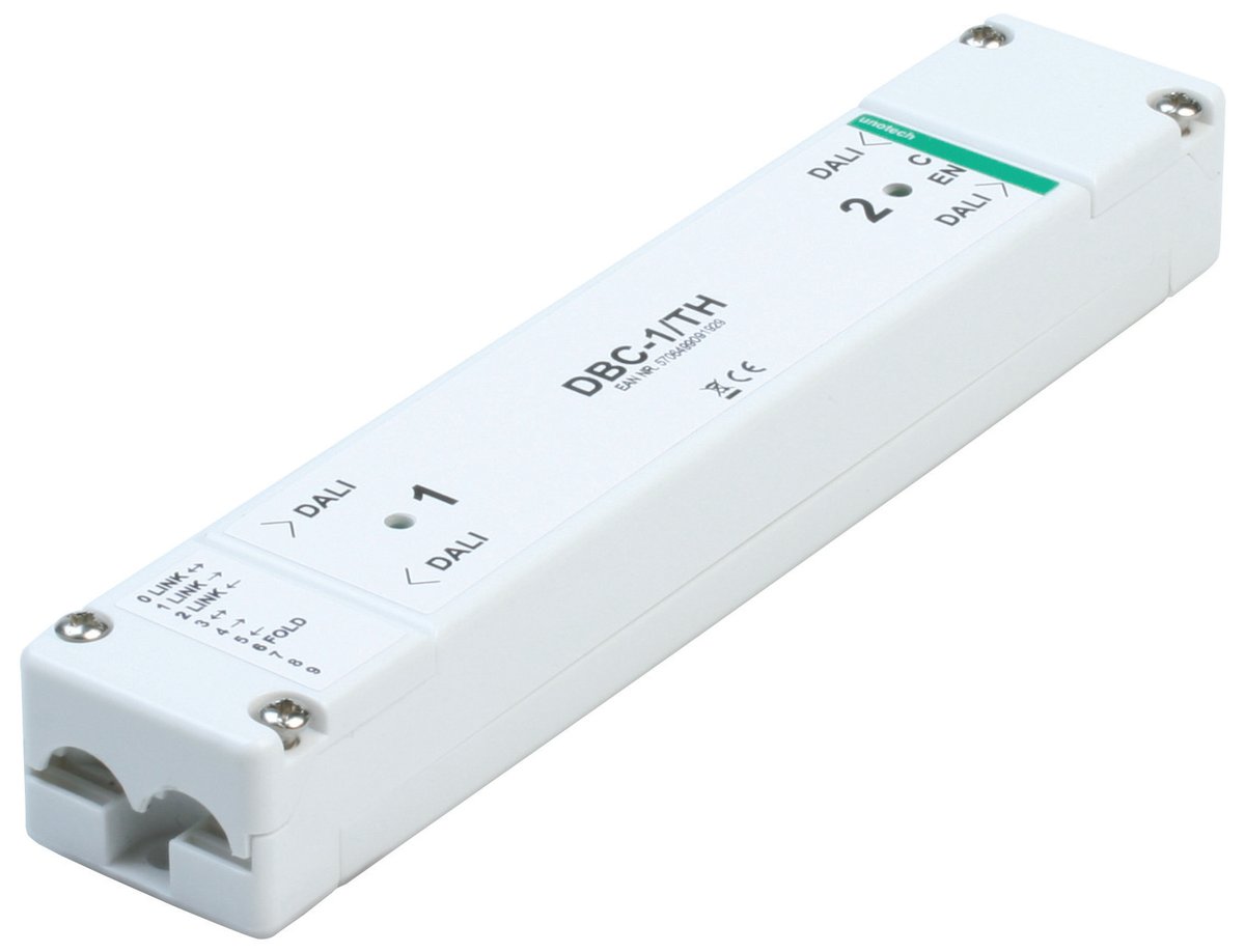 Dali modul DBC-1/TH fra Niko. Enkel montering, kan kombineres med DALI tilstedeværelsessensorer, forsynes direkte fra DALI-bussen og kan sammenkoble separate DALI-busser.