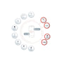 Danfoss Ally™ startpakke med 1 x Danfoss Ally™ gateway samt med 9 termostater (014G2460) Danfoss Ally™. Inkl. adaptere til RA, M30, RAV & RAVL ventiler.