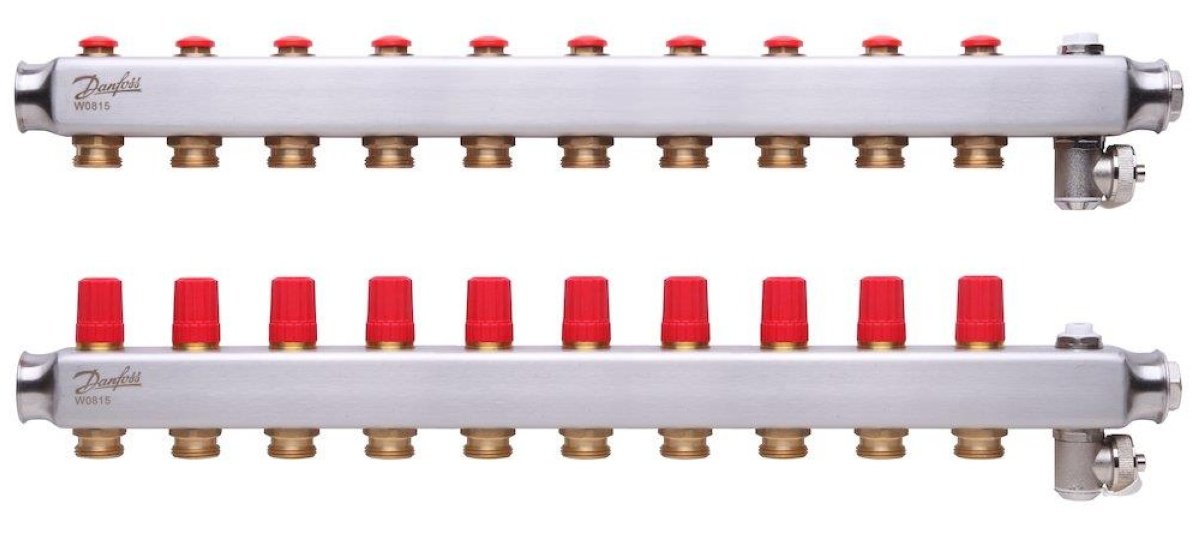 Hver enkelt slange i gulvvarmesystemet er koblet til manifolden, noe som gjør det mulig å regulere varmetilførselen til alle rom i bygningen uavhengig av hverandre. Manifolden består av en fremløpsmanifold og en returmanifold. Fremløpsmanifolden gir mulighet for å stenge hver krets uavhengig av hverandre.