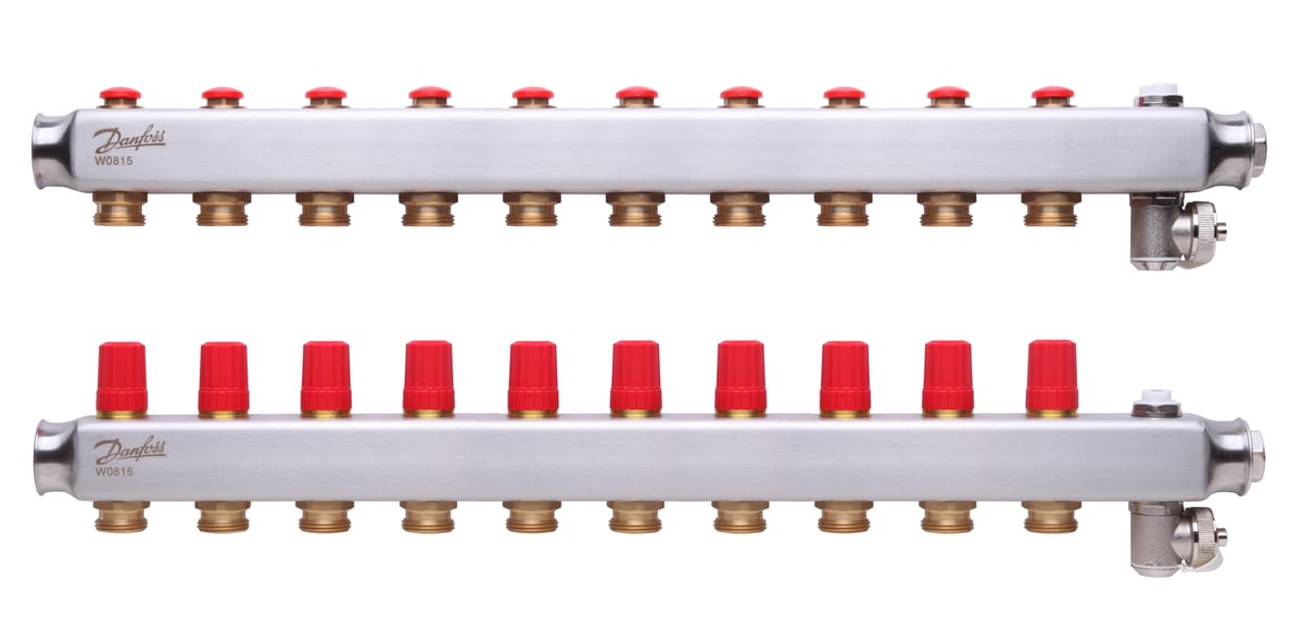 Fordelerstokken består av en turfordeler og en returfordeler. Turfordeleren gir mulighet til å stenge av hver krets individuelt. Returfordeleren er utstyrt med Danfoss' forhåndsinnstillingsventiler, som sikrer optimal vannbalanse i systemet. Ventilene kan styres elektronisk via termoaktuatorer.