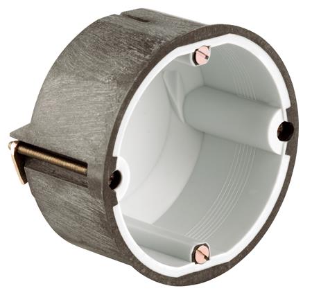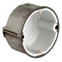 Brannsikker boks Ø74 mm, dybde 44 mm, for brannbeskyttelsesvegger EI30 - EI120. Egnet for platetykkelser 7-40 mm. Med 2 kabelgjennomføringer opp til Ø 11 mm.