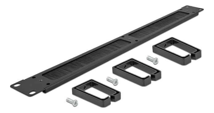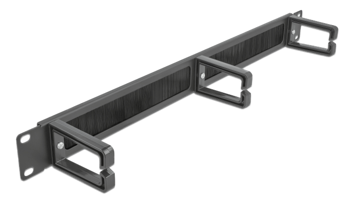 19″ Kabelhåndtering Børstestrimmel med 3 Kroker, 1U, Svart