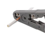 Det er fire forskjellige blader som sammen med forhåndsdefinerte spor og en justeringsskrue gjør at verktøyet passer til kabler for både nettverk og antenne, telefon og høyttalere.