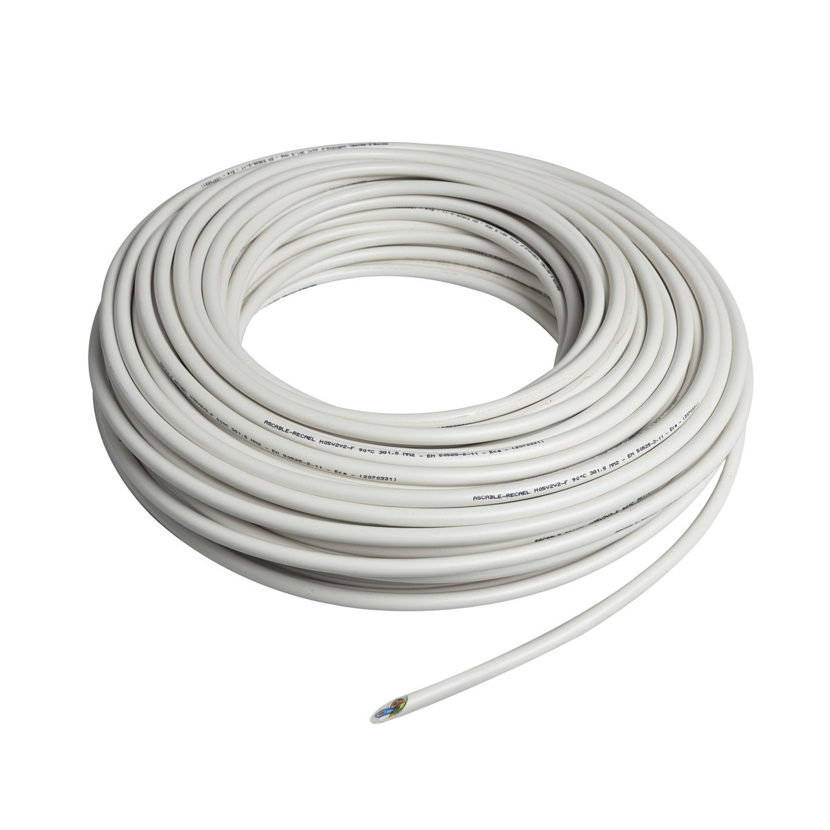 Downlight kabel, varmebestandigt 90°, hvid, 3G1,5, 50 meter