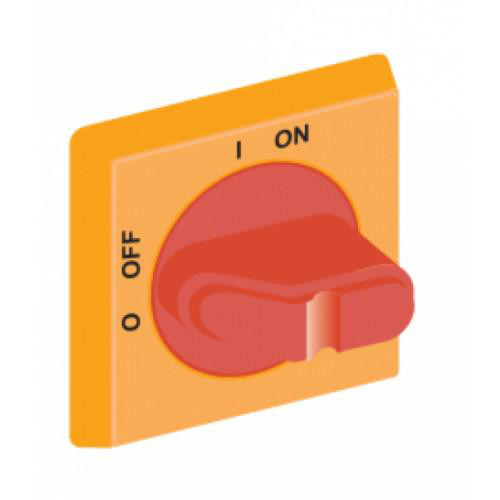 Vrihåndtak i rød-gul farge designet for montering i tavlefront. Dette vrihåndtaket krever en 6mm aksel og er kompatibelt med bryterne OT16FT-40FT. I OFF-posisjon kan vrihåndtaket låses med opptil 3 hengelåser med en diameter på 5-8mm, noe som sikrer ekstra sikkerhet og kontroll.