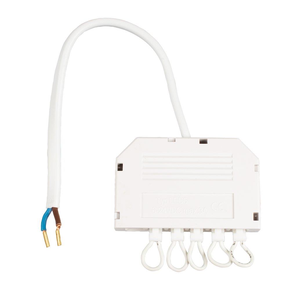 Fordelerboks for rask og korrekt tilkobling av f.eks. Sofia LED minidownlight. Monteres på LED-driverens sekundærside og sikrer seriekoblingen (350 mA).