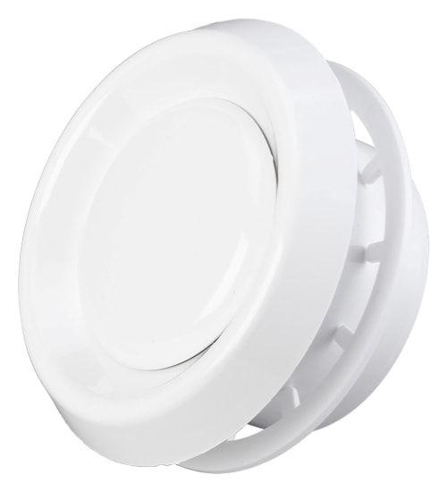 Ut- og innblåsningsventil med bajonettfatning, som sikrer enkel montering i Ø125 mm rør.