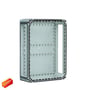 Fibox kassebunn SLN i grå polykarbonat (PC) med dimensjonene 440x320x130mm. Den har en tetthetsklasse på IP65, slagfasthet IK08 og er dobbeltisolert.