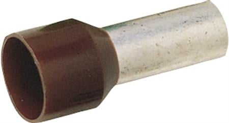 Elpress isoleret terminalrør i brun polypropylen og fortinnet kobber, passer til 0,14 mm² ledning med 8,0 mm kontaktflade.Oversigt over farvekoder for Elpress isolerede terminalrør, hvor brun angiver TE farvekode for 0,14 mm² ledning.
