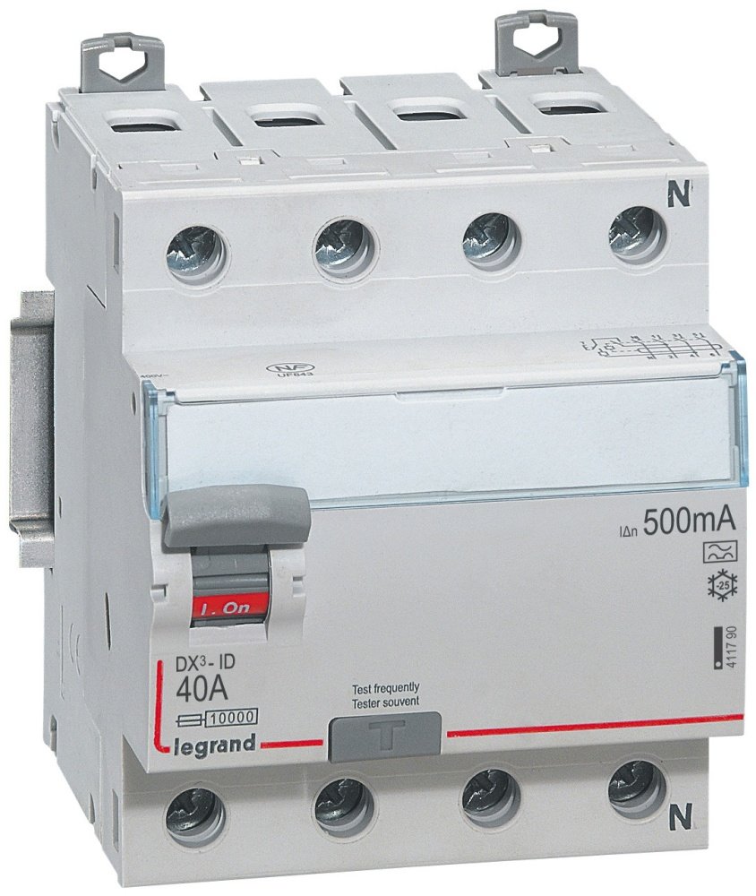 4 Pol Feilstrømdeteksjon: AC feilstrøm og pulserende DC feilstrøm. Kortslutningsbestandighet EN/IEC 61008-1 10kA. Märkespänning: 230/400V AC. Type A. Tilkoplinger: 1...