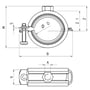 Hengslet rørklammer med hurtiglås og gummiisolering. Har M8 gjengeforbindelse for f.eks. gjengestenger, stokkskruer osv..