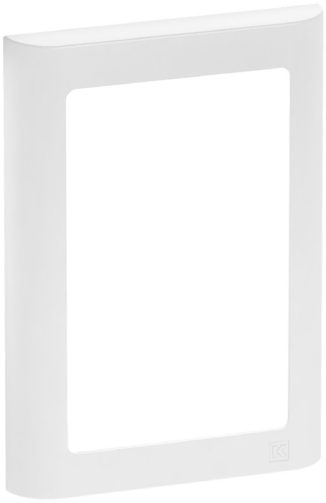 10. LK FUGA Soft 63 lodret designramme i hvid, med plads til to moduler og et diskret K-logo.LK FUGA – Soft 63 loddrett designramme, 2 modul, hvit