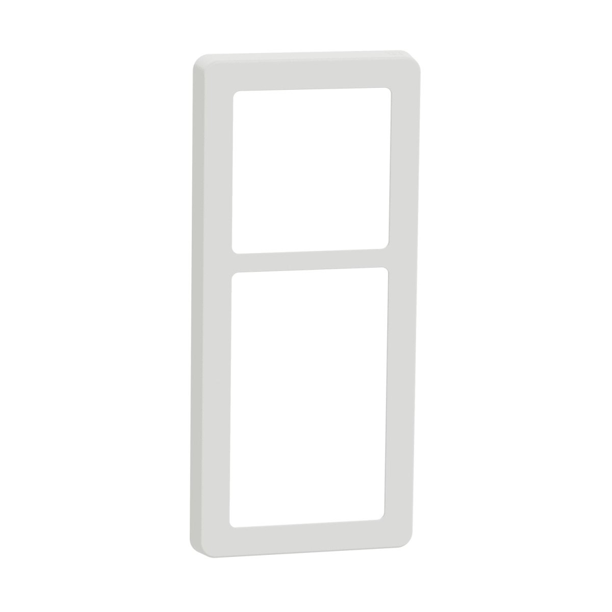 38. LK FUGA Base 63 designramme i hvid med plads til 2x1½ modul, vist isoleret på hvid baggrund.LK FUGA – Base 63 designramme, 2x1½ modul, hvit + teknisk monteringsramme