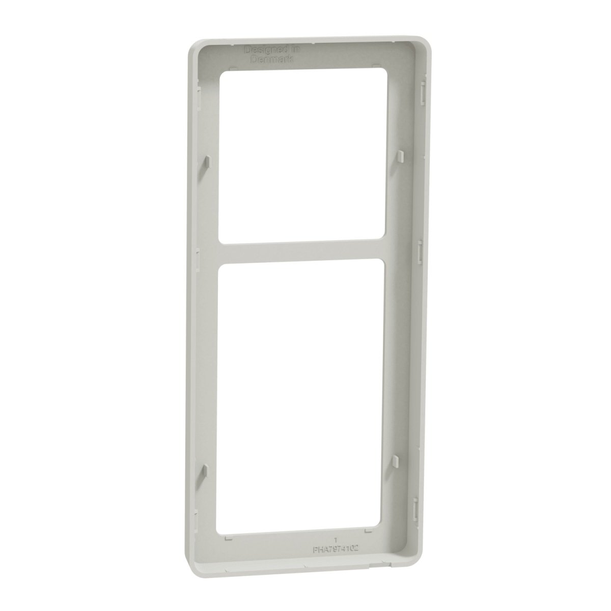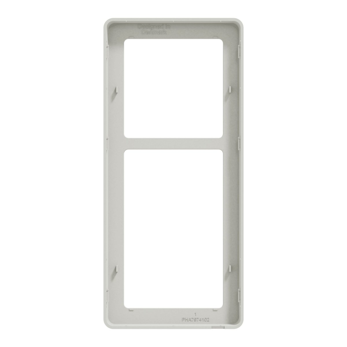 28. Lauritz Knudsen LK FUGA Base 63 design ramme, 2 modul, lysegrå, med to firkantede åbninger.LK FUGA – Base 63 designramme, 2 modul, lys grå + teknisk monteringsramme