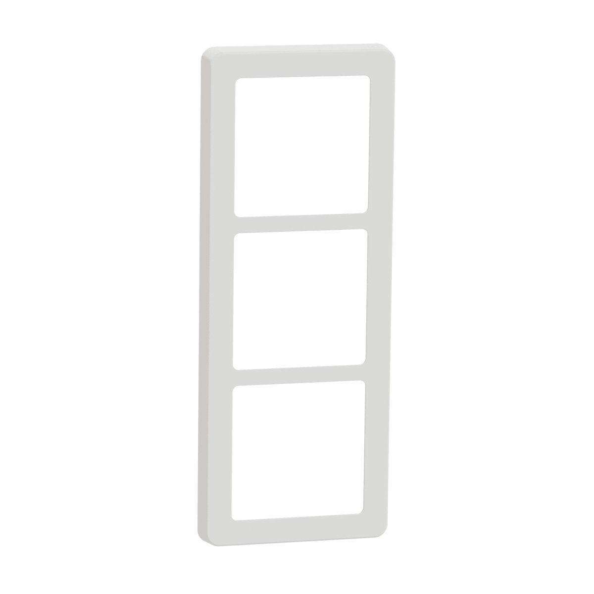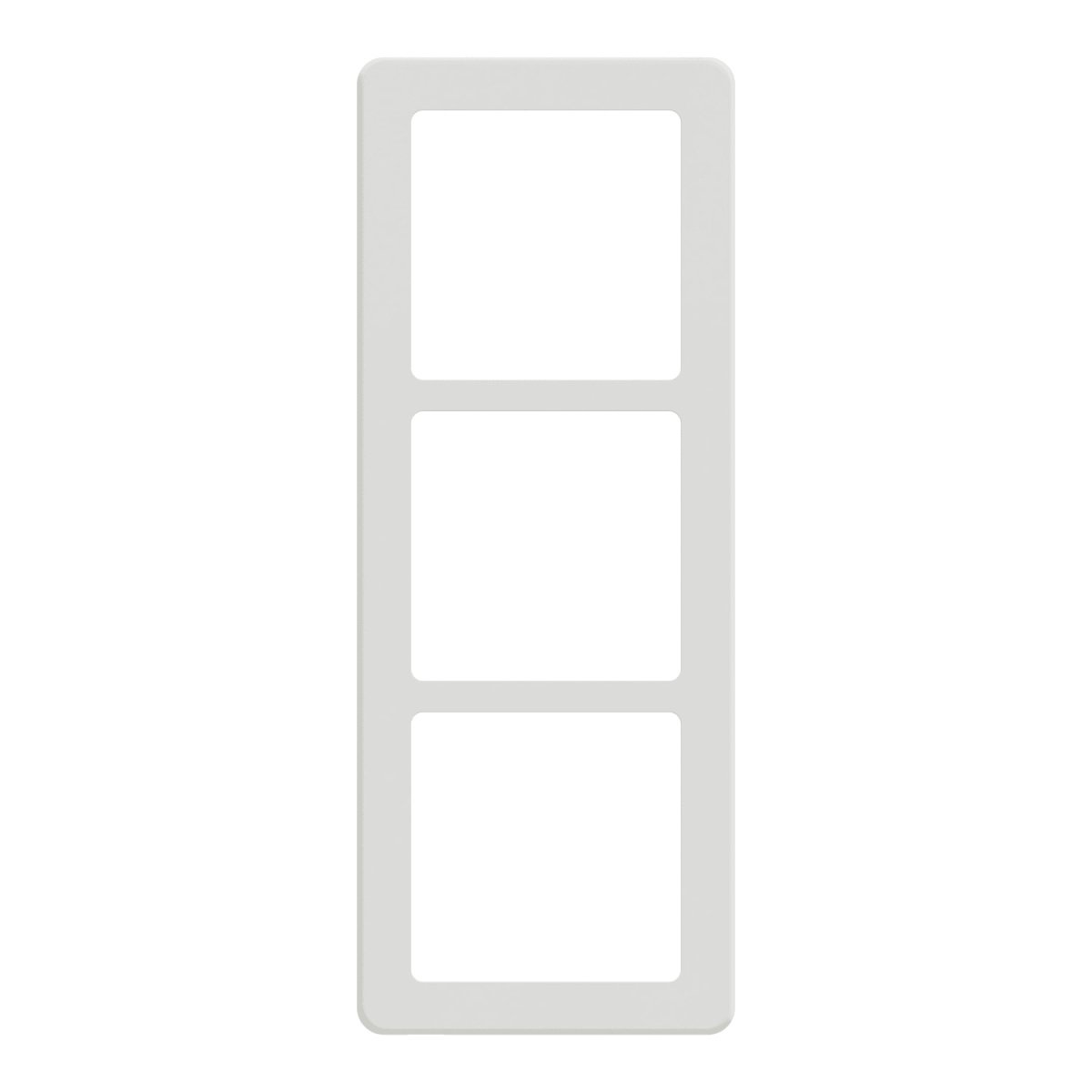 37. LK FUGA Base 63 design ramme i hvid med plads til 3x1½ modul, vist forfra uden baggrund.LK FUGA – Base 63 designramme, 3x1½ modul, hvit + teknisk monteringsramme