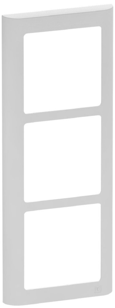 38. LK FUGA Soft 63 designramme i lysegrå til 3½ modul, med tre rektangulære åbninger til afbrydere eller stikkontakter.LK FUGA – Soft 63 loddrett designramme, 3½ modul, lys grå + teknisk monteringsramme